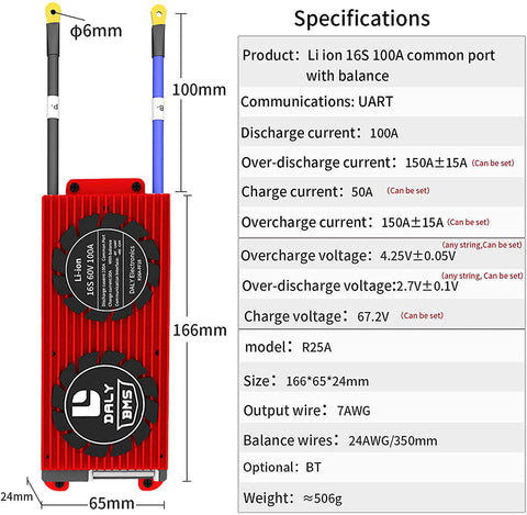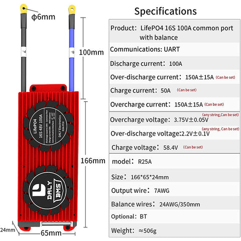 Placa BMS Daly Smart LifePO4 16S 48V 100A Li-ion 16S 60V 100A con Bluetooth 24 65 166