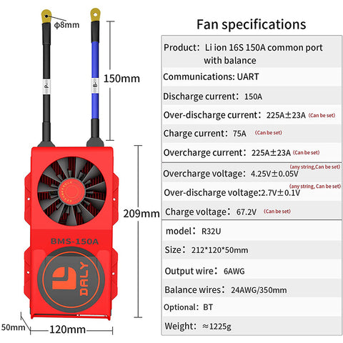 Placa de ventilador BMS Daly Smart Lifepo4 16S 48V 150A Li-ion 16S 60V 150A con Bluetooth 50 120 209