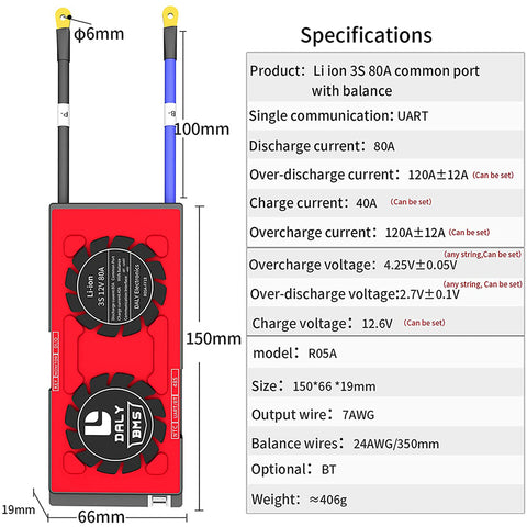 Placa BMS Daly Smart BMS de iones de litio 3S 12 V 80 A con Bluetooth 1966150