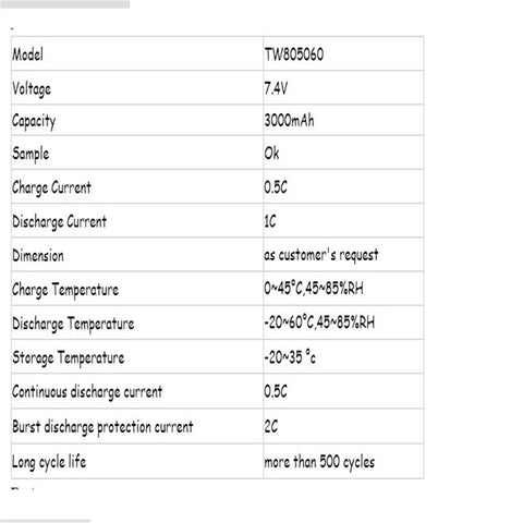 7.4v 805060 3000mah Rechargeable Lithium Polymer Battery Pack