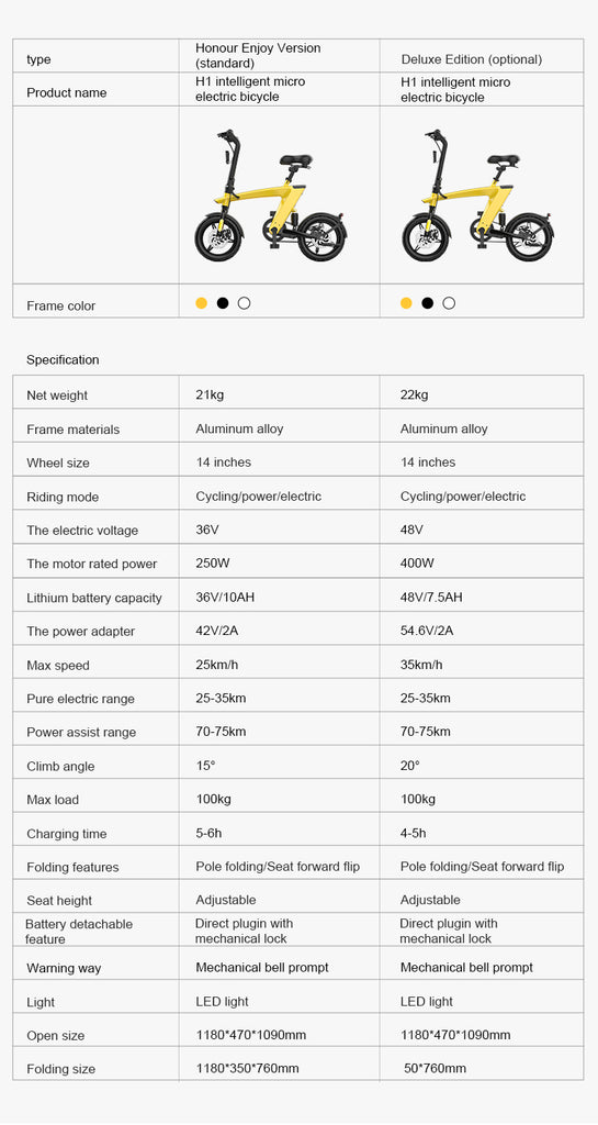 H1 intelligente micro elektrische fiets 48V 7.5AH 400W Deluxe Edition