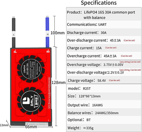 Daly smart bms LifePO4 16S 60V 30A Li-ion bluetooth BMS board 13 66 128