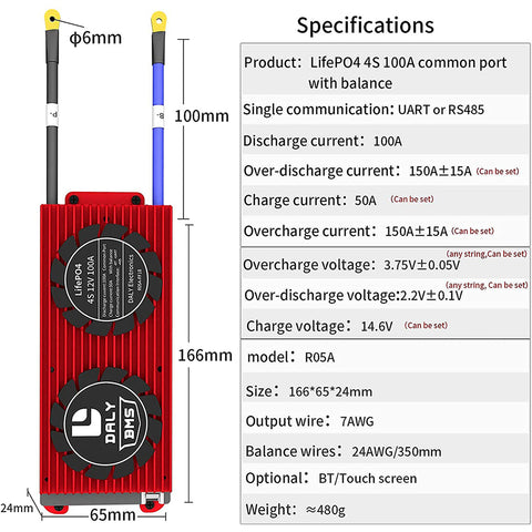 Daly smart bms Lifepo4 4S 12V 100A bluetooth BMS board 24 65 166