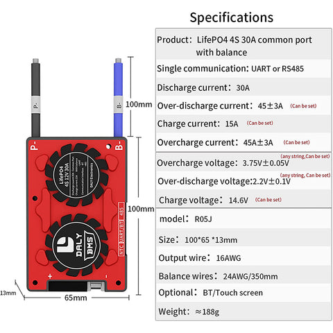 Daly smart bms Lifepo4 4S 12V 30A bluetooth BMS board 13 66 128