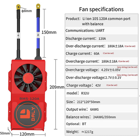 Daly smart bms Li-ion 10S 36V 120A bluetooth BMS FAN board 50 120 209