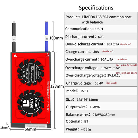 Daly smart bms LiFePo4 16S 48V 60A bluetooth BMS board 18 66 128