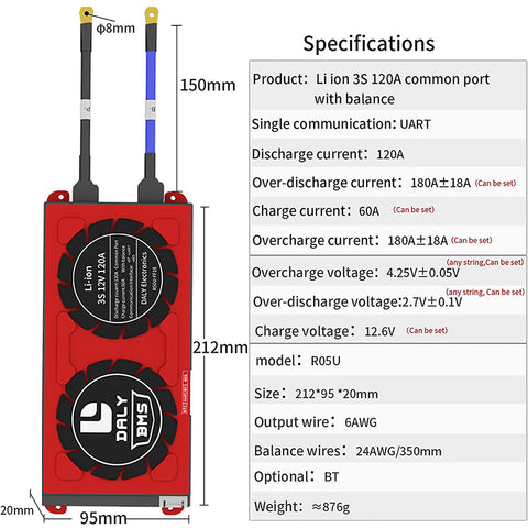 Daly smart bms Li-ion 3S 12V 120A bluetooth BMS board 2095212