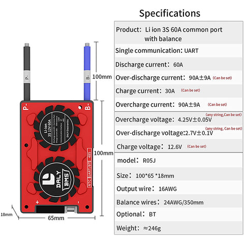 Daly smart bms Li-ion 3S 12V 60A bluetooth BMS board 1866128