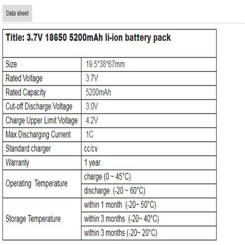 - 1 x Bateria 3.7V 5200mAh 1S2P 18650